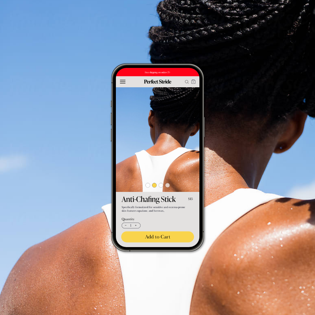 Perfect Stride is a personal care brand for WOC Athletes. Porch Studio partnered with Perfect Stride to develop their brand from full brand identity to expressive packaging, and a high-converting e-comm site to support and deepen their mission.